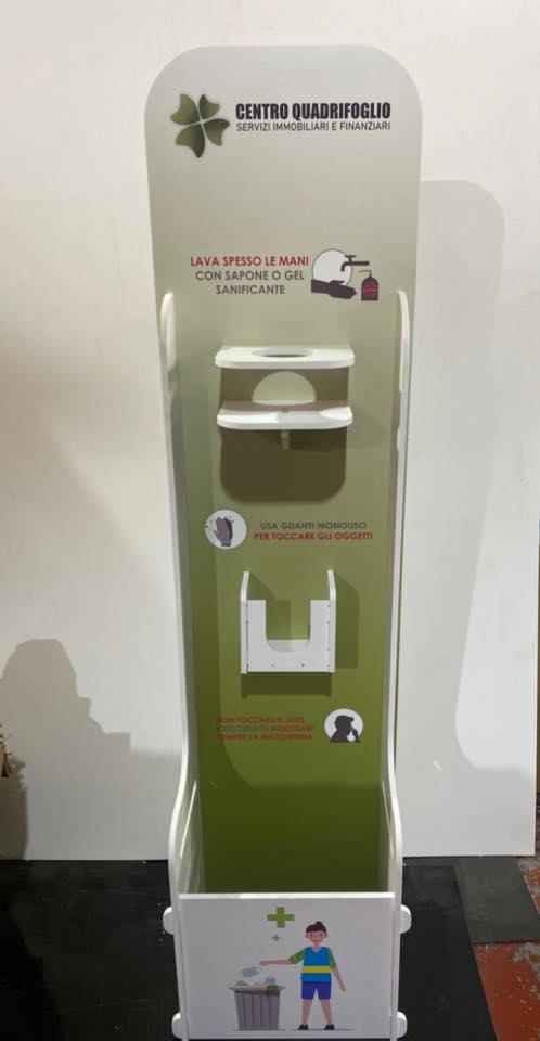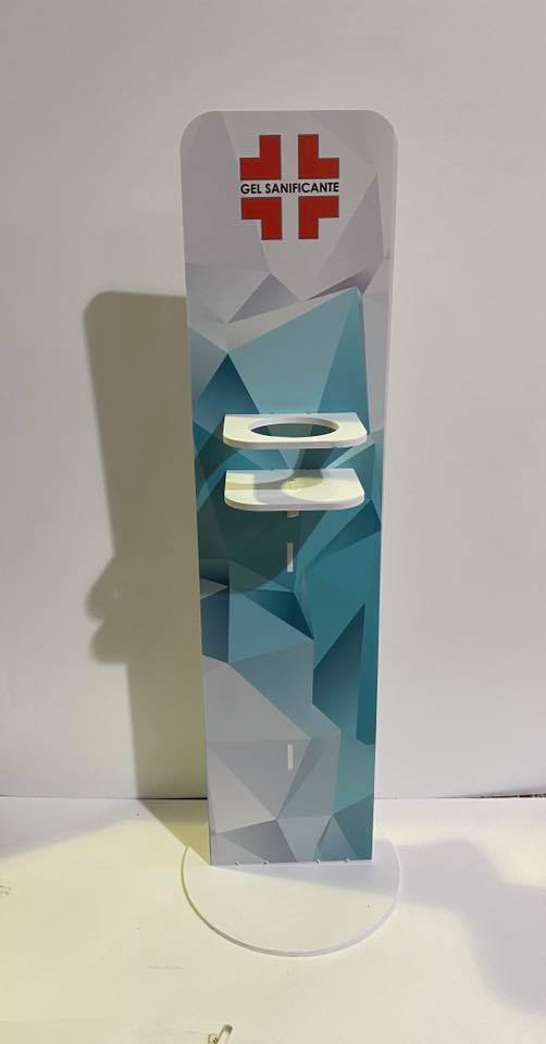 Colonnina Totem  porta gel mani, guanti e cestino TOTALMENTE PERSONALIZZABILE.